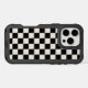 Rugged iPhone case features a bold black and cream checkered pattern. The geometric checkerboard pattern is made of rows of alternating beige and black squares. Other case styles and models also available in the sidebar.