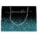 Black and Dark Teal Glitter Elegant Name Large Gift Bag