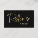 These trendy and chic black business referral cards feature modern, faux gold handwritten script and a cute scribbled heart for a casual, simple look. The back has several fields that you can customize with your retail shop or company information.