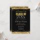 Elegant Faux gold glitter with shimmering confetti highlights on the top and bottom border. All text is adjustable and easy to change for your own party needs. Class of any year, Class reunion, Black and gold, script, elegant, stylish, personalized template. Add Events on the back of invitation.