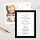 Affordable custom printed graduation party postcard invitations. This chic feminine design has a grad party invitation template on the front in black and gold text on a black background. The postcard back has space for 3 senior pictures and your printed return address for quick and easy mailing. Use the design tools to choose any fonts and colors you like or upload more images to create a totally custom graduation announcement.