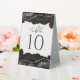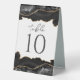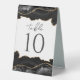 Elegant Black Agate Wedding Table Number Cards. Faux gold glitter graphics. Script font highlights with easy to read serif name font. Easy to adjust for your own wedding needs. Personalized wedding table cards.