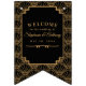 Black and gold art deco fan flowers wedding bunting flag. 1920 Great Gatsby style.