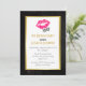 Black and Gold Birthday with Pink Kissy Lips Invitation