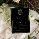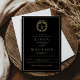 Black and gold botanical crest monogram wedding foil invitation