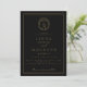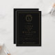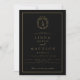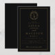 Black and gold botanical crest monogram wedding invitation