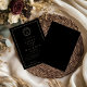 Plain white envelopes are included with paper invitations and will come to fit the invitation size you select. If you don’t need the envelopes, you may choose to not receive them by selecting the dropdown below "Envelopes" and choosing "None." If you’d like to have a design on your envelopes, you can browse all of these available envelopes to find the design that complements your Black And Gold Botanical Crest Monogram Wedding Invitation.