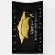 Announce to the world that your favorite grad has reached their milestone with this stunning, simple, modern, personalized banner. Bold, graphic, white typography and a faux gold foil cap icon overlay a black background. Personalize the custom text with your graduate’s name, mascot or school name, and class year. Choose from indoor or outdoor options. Matching invites, thank you cards, cap toppers, fans, napkins, plates and other graduation goodies are also available in this trendy and stylish collection. Guaranteed to preserve cherished memories of their special occasion!