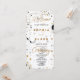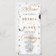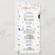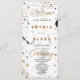 The text on the program is artfully presented in a mix of simple print, decorative print, and elaborate script, adding a touch of sophistication and whimsy. The colors of the text, in black and gold, harmonize perfectly with the celestial theme, creating a stunning visual contrast that's sure to captivate your guests.
