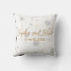 Adding a personal touch, the pillow features the couple's first names and the wedding date in luxurious gold writing. This customization not only makes it a cherished keepsake but also adds a sophisticated touch to your wedding decorations. The gold text gleams brilliantly against the white background, enhancing the overall elegance and charm of the design.