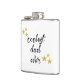 Well made flask, a little better than I had expected. Flask came in clear plastic box which gave it a nice presentation when I took it out of the zazzle packaging. Image is not printed on flask but on sticker. Don't know how this will hold up I haven't used it yet. This would make a Great gift! I plan to purchase more for friends! Cheers. I thought a little brighter than computer. Very crisp, writing wasn't