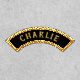 Simple custom name patches on color editable black beige background with gold border stitching, no minimum order quantity and no setup fee.