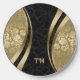 Black and gold damasks with gold dynamic stripes and custom monogram.
