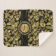 Elegant metallic gold floral damask pattern over black background. Custom monogram