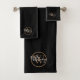 Black and Gold Elegant Script Monogram Bath Towel Set