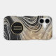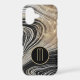 Here's a very attractive phone case that features a faux black, white, and gold swirled agate background that forms an interesting abstract pattern. At the lower center is a gold lined black circle with your monogram in matching gold. At the top is a subtle, sparkly gold star shine overlay.