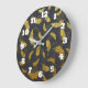 Black And Gold Feather Pattern Large Clock