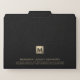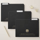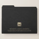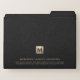 Elevate your professional image with our Black and Gold File Folder Sets. Featuring a brushed gold monogram initial alongside your company name and information, these folders exude sophistication and organization. The elegant design stands out against a black leather print background, making them essential accessories for estate planners, attorneys, advisors and any business professional looking for elegant document organization. Keep your important documents, presentations, and materials neatly organized while showcasing your brand's elegance and attention to detail. Our folders blend functionality with a touch of luxury, perfect for making a lasting impression in meetings and presentations.