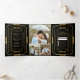 Black and Gold Foil Art Deco Photo Collage Wedding Tri-Fold Invitation