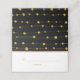 Black, gold foil beads and stripe modern wedding escort place card. It showcses a pattern of string with gold foil balls with metallic shine that look like beads on rope and a golden stripe on black and white background.
