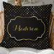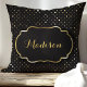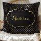 Black and Gold Foil Polka Dot Confetti Monogram Throw Pillow