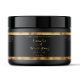 A waterproof label for cosmetics and/or soap products with a black background and faux gold border. Customize it with your business and product information. This label measures 8.25 inches by 1.75 inches (209 mm by 44 mm) and is suitable for jars with a diameter of 2.6 inches (66 mm) or more and a label height area of at least 2 inches (50mm). Most 8 oz (240 ml) and 16 oz (480 ml) jars fit this description, but check the jar specifications to be sure. This label makes a great choice for packaging beauty products that require larger labels like sugar scrubs, body butters, and thick lotions and creams.