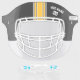 Black and Yellow Gold - Add your name and number to customize this helmet design. Are you a football player in your off-time? This helmet with black and gold stripes is great for any athlete or junior league player. The white guard mimics a helmet guard to look like you are ready to play! You can change the helmet colors when you click on the customize area and choose different colors.