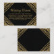 Black And Gold Geometric Wedding Details Card. This elegant modern trendy abstract design features sparkly gold glitter lines with confetti on a solid black background.