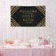 Black And Gold Geometric Wedding Welcome Banner. This elegant modern trendy abstract design features sparkly gold glitter lines with confetti on a solid black background.
