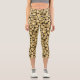 A bright gold and tan giraffe print on a dramatic black background makes an interesting and unique pattern on this pretty pair of capri leggings. Unique and elegant!