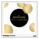 Coordinates with the Black and Gold Glamour and Beauty Business Card Template by 1201AM. A motif of faux metallic gold and black circles creates an eye-catching design on this glamorous wall decal template. © 1201AM CREATIVE
