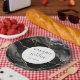Abstract Black and Gold Glitter Agate Variegated Wedding party plate. Faux gold foil confetti and paint brush strokes. Script font highlights with easy to read serif name font. Easy to adjust for your own wedding needs. Personalized wedding party plates.