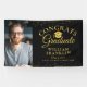 An elegant graduation banner featuring your grad's photo and details set in chic typography on a black and gold glitter background. Designed by Thisisnotme©