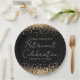 Create matching paper plates to match your black and gold glitter retirement party. Edit text for your event.