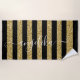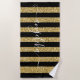 Black and Gold Glitter Stripes Script Custom Name Beach Towel