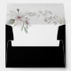 This gothic wedding invitation envelope features painted watercolor dusty white flowers with green leaves on the inside flap. Design features watercolor airy greenery foliage and branches in various shades of green with printed white leaf elements. For more advanced customization of this design, please click the "Customize further" link. Matching items are also available in the Black and Gold Gothic style Dusty White flowers watercolor wedding collection