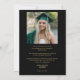 Elegant classic chic calligraphy script high school college university simple stylish black and gold graduation announcement with 2 custom photos and text template.