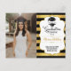 Black and Gold Graduation Invitation with photo, gold stripes.
