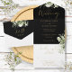 Black And Gold Greenery Floral Monogram Wedding All In One Invitation