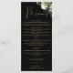 This elegant black and gold floral botanical greenery leaves wedding menu can be personalized with your information in chic typography with your monogram initials on the reverse. Designed by Thisisnotme©
