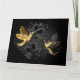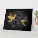 Black and gold jewelry hummingbirds on gray background decorated with plants. Jewelry birds. Golden bird. Gold bird.
