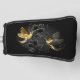 Black and gold jewelry hummingbirds on gray background decorated with plants. Jewelry birds. Golden bird. Gold bird.