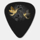 Black and gold jewelry hummingbirds on gray background decorated with plants. Jewelry birds. Golden bird. Gold bird.