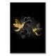 Black and gold jewelry hummingbirds on gray background decorated with plants. Jewelry birds. Golden bird. Gold bird.