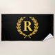 Black and Gold Laurel Wreath Monogram Beach Towel