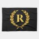 Black and Gold Laurel Wreath Monogram Kitchen Towel
