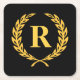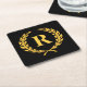 Black and Gold Laurel Wreath Monogram Square Paper Coaster