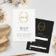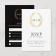 Black and gold leaf oval wreath RSVP wedding Card