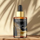 This dropper bottle product label features a faux black and gold marbled background with black text. This label measures 2.375 inches long by 1.25 inches high (60 mm long by 32 mm in height) and is a great choice when you are looking to package essential oils, fragrance oils, beard oils, face serums, hair serums, and other products in standard 1/2 ounce (15 ml) or 1 ounce (30 ml) glass dropper bottles.