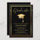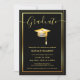Black and Gold Modern Graduate Cap Graduation Invitation